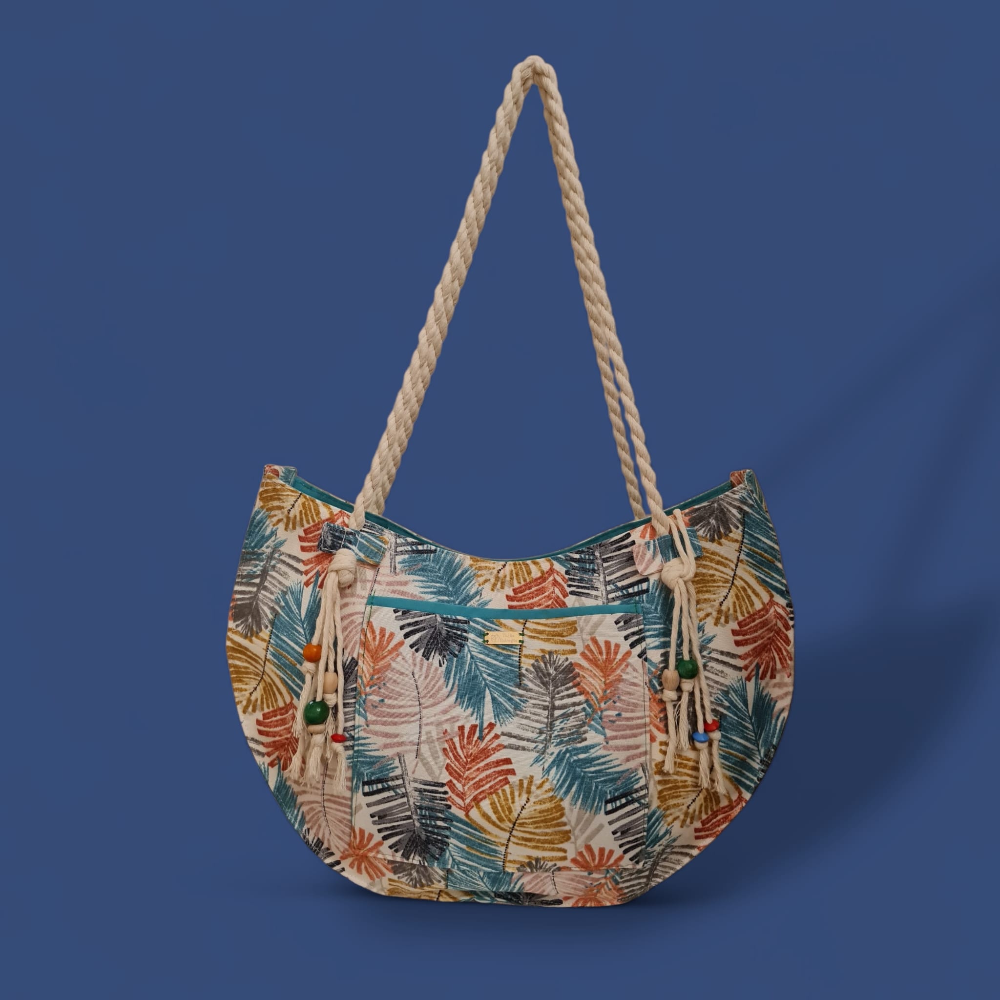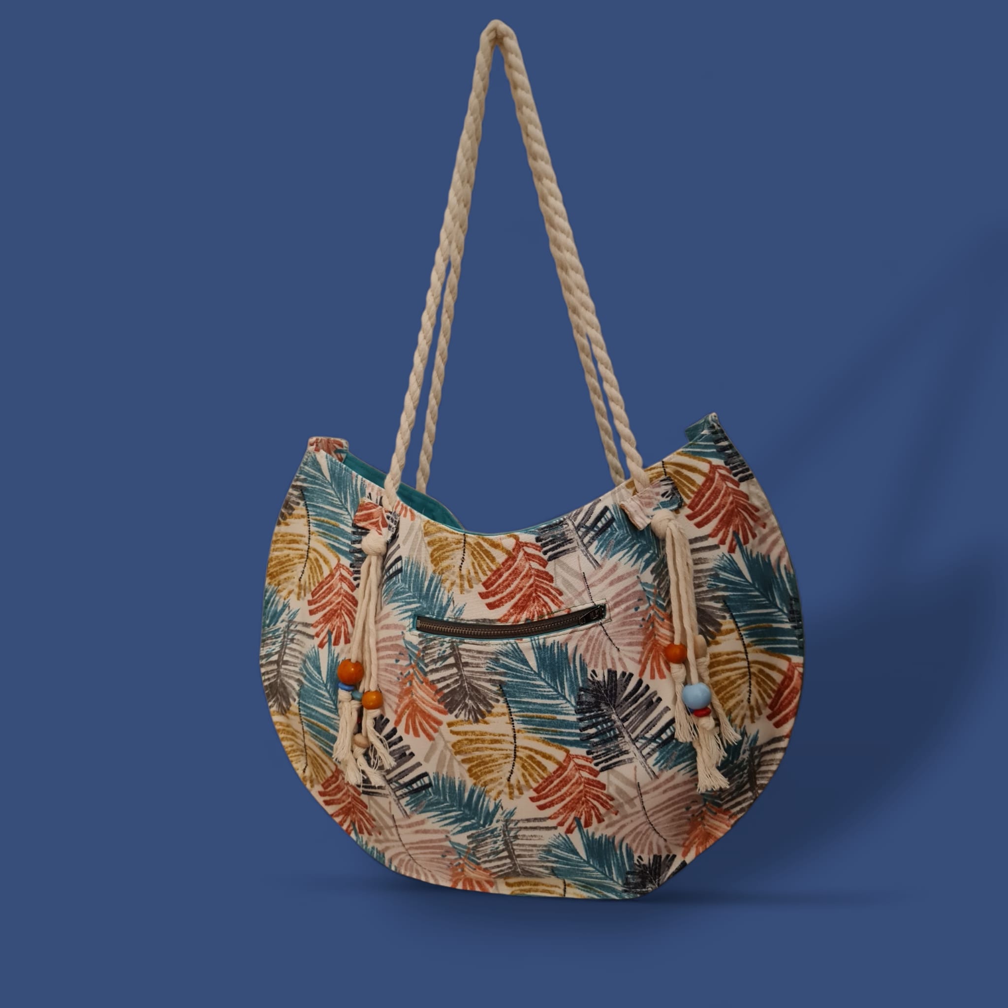 Renkli yaprak desenleriyle bez çantan; canlı, enerjik ve tam bir yaz parçası!